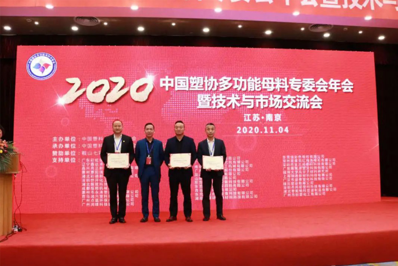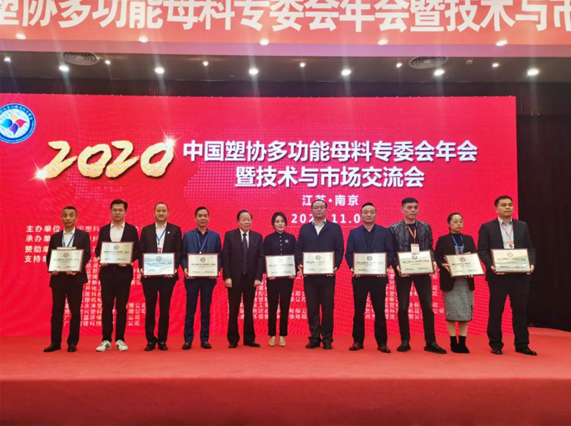 At the annual meeting and market exchange meeting of the Multifunctional Masterbatch Committee of China Plastics Processing Industry Association, Qingdao Rich Material Company, a subsidiary of Dawn Group, was awarded as an outstanding member unit of scientific and technological innovation in the 13th Five-Year Plan of China’s plastics processing industry(Multifunctional Masterbatch) Top ten enterprises, and the high starch-filled biodegradable functional masterbatch project won "the 13th Five-Year Plan" outstanding scientific and technological achievements in China's plastics processing industry. The company's General Manager Niu Maoping was elected as a member of the 4th Council of the Multifunctional Masterbatch Special Committee of China Plastics Processing Industry Association.