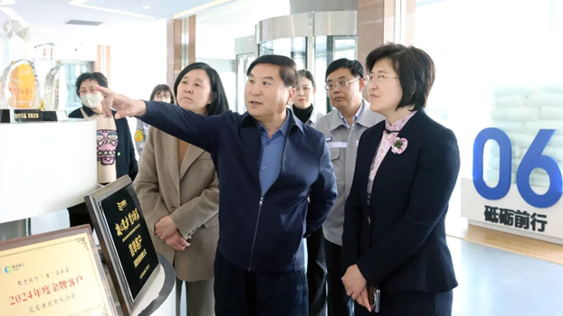 In the lobby of the headquarters of Dawn Group, Chairwoman Li Shaona listened to the introduction of the enterprise's development, industrial layout, industry status, scientific and technological innovation, and social responsibilities. She spoke highly of the achievements of the enterprise's high-quality development and especially affirmed the "half the sky" role played by female employees in key positions such as scientific and technological innovation and management improvement.