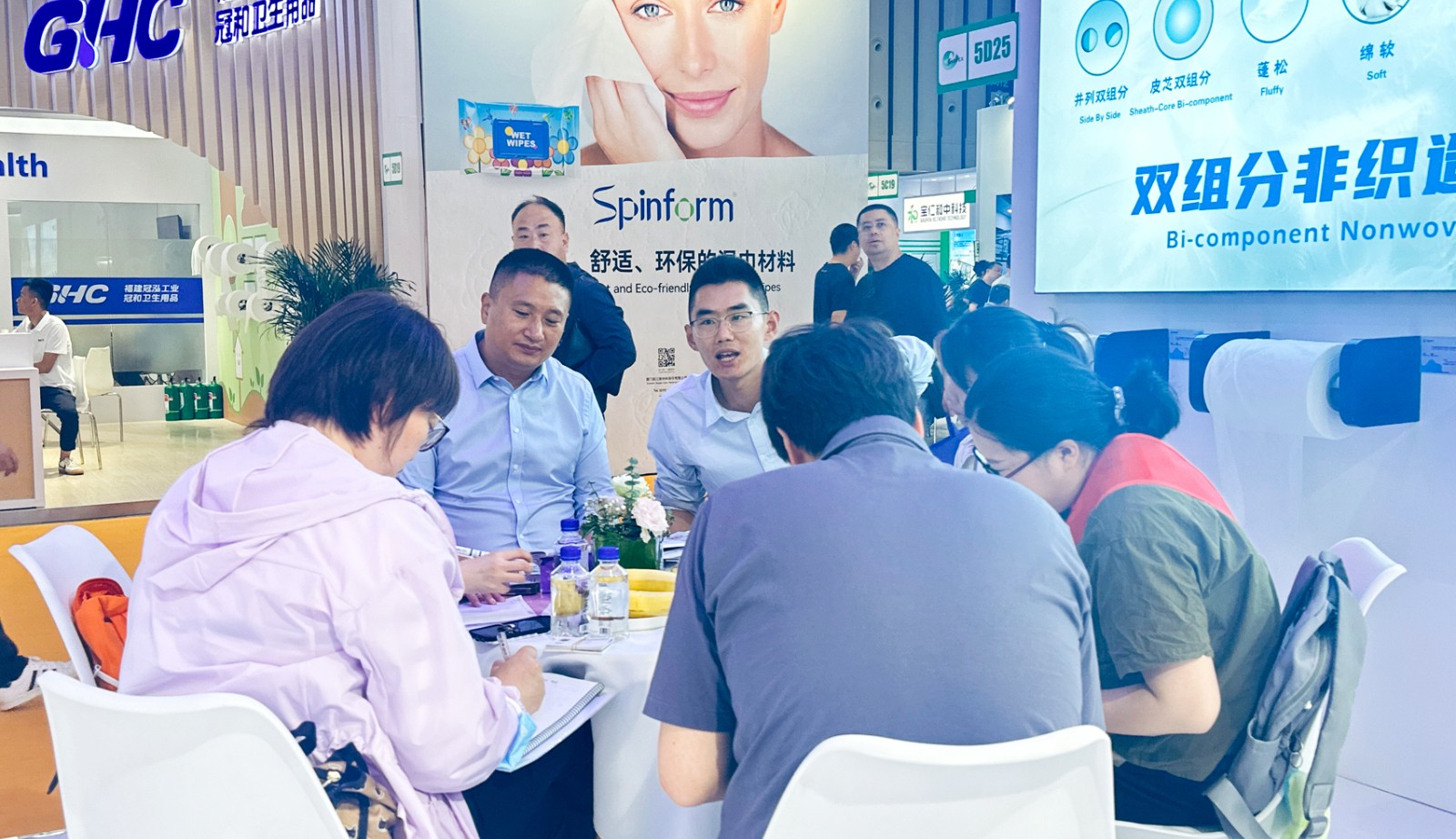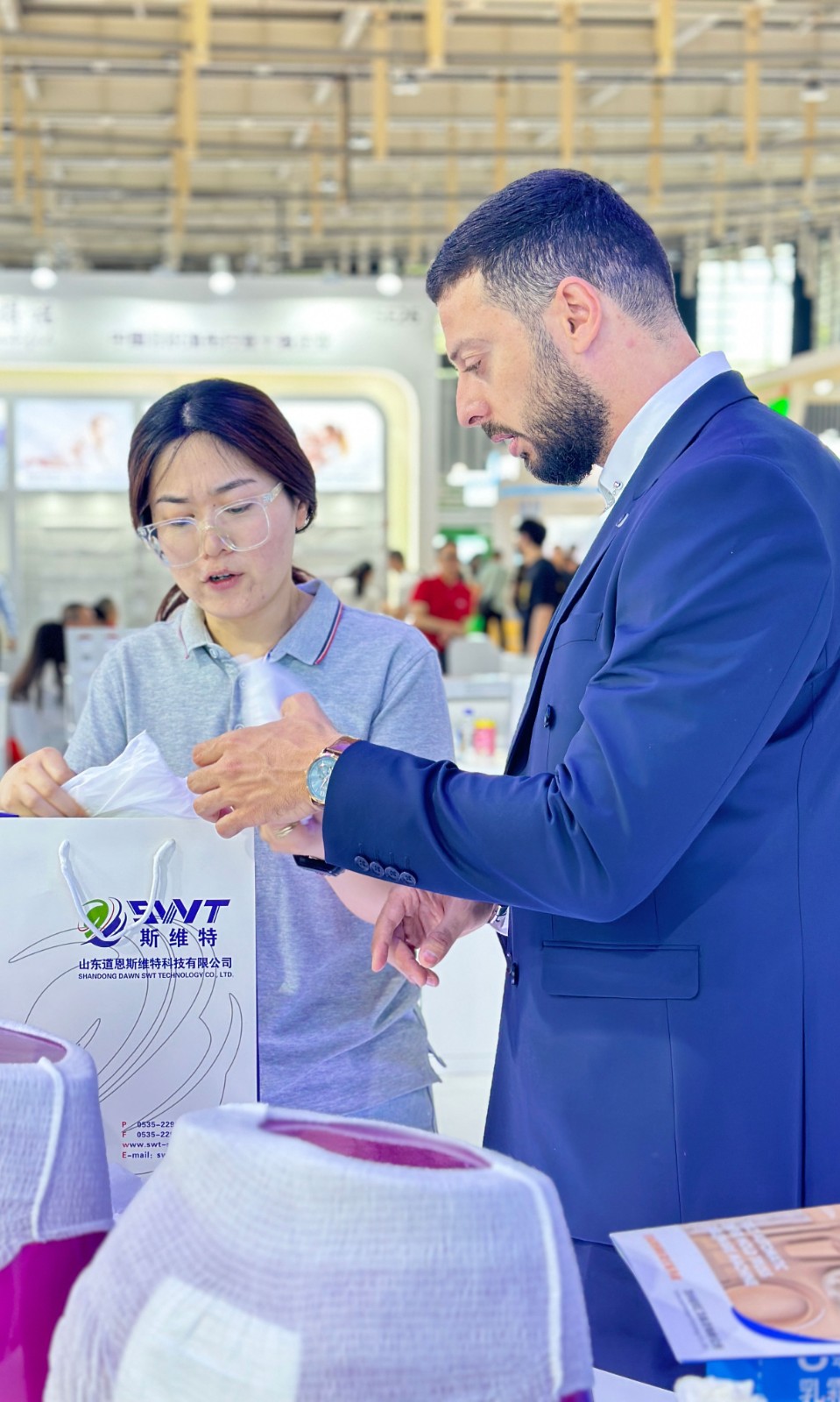 来自印度的新客户,对17g3D液态绵+并列双组分非织造布产生浓厚兴趣,双方进行了长达40分钟的深度交流,并相约展后详谈合作事宜。不少海内外战略客户的研发和采购人员,纷纷来快盈VIII斯维特展位探讨产品技术,洽谈商务合作。“快盈VIII邀请新客户来公司实地考察,与老客户达成增量深度合作意向,此次参展收获满满!”邹秉桓总经理说。