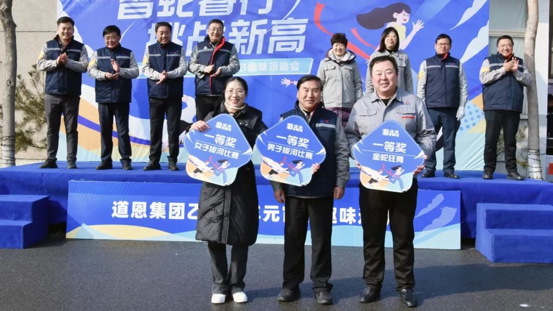活动期间,集团公司领导与女子拔河比赛的冠军队伍进行友谊赛,将现场氛围推向高潮,干部员工尽情享受比赛带来的乐趣与激情。各代表队经过三个小时的激烈角逐,诞生了各比赛项目的一、二、三等奖,出席活动的集团公司领导分别为获奖代表队颁奖并合影留念。