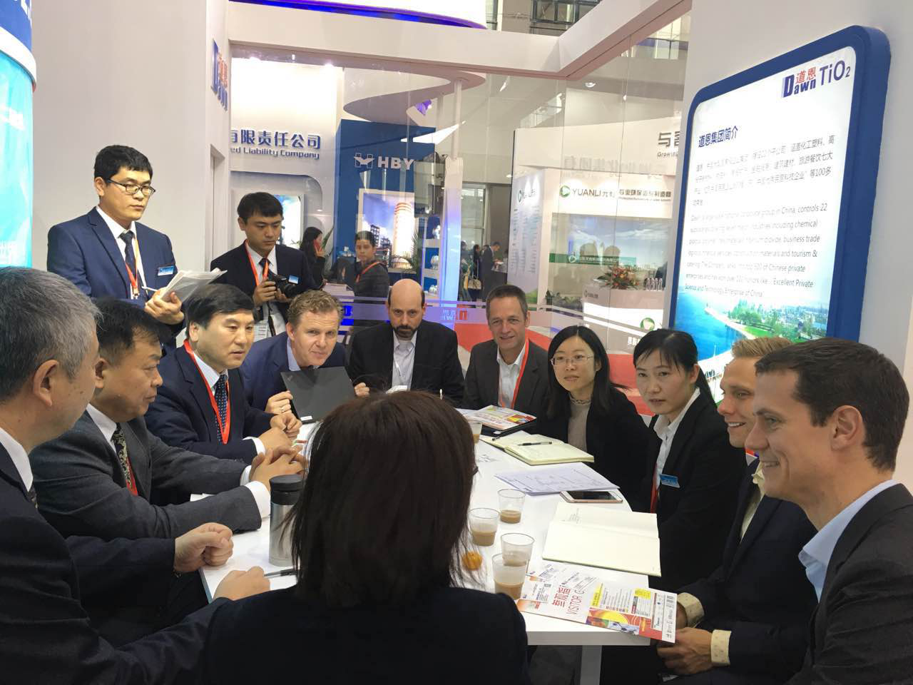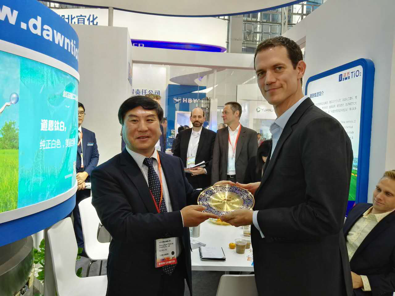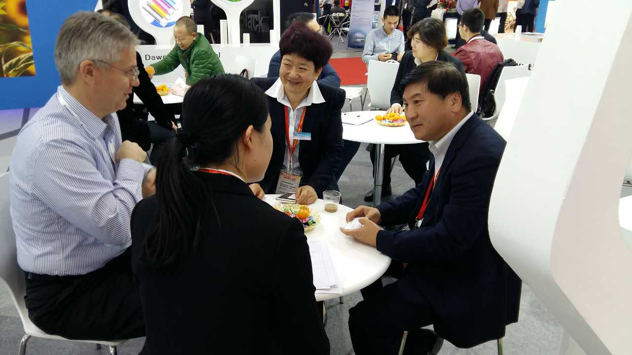 作为世界第三大油墨生产商,盛威科油墨有限公司全球采购总监NevenBarctel慕名访问快盈VIII展台,于晓宁总裁与客人进行友好交流。双方就建立长期战略合作伙伴关系达成共识,共同研发油墨专用钛白粉,成为盛威科全球统一牌号。快盈VIII集团常务副总裁索延辉用流利的日语和日本立邦洽谈2017年合作事宜,经过技术交流,最终确定明年第一季度订单。