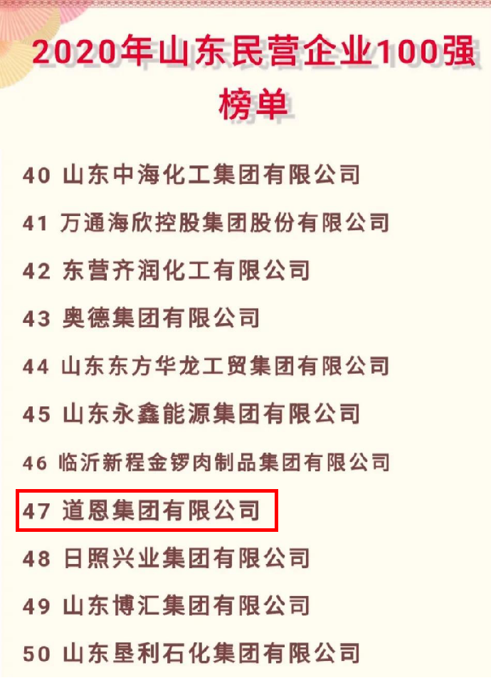 据悉,该榜单由山东省工商联、省工业和信息化厅、省农业农村厅、省商务厅、省税务局、省市场监管局等6个部门共同组织评比,在业界具有影响力、公信力和知名度。