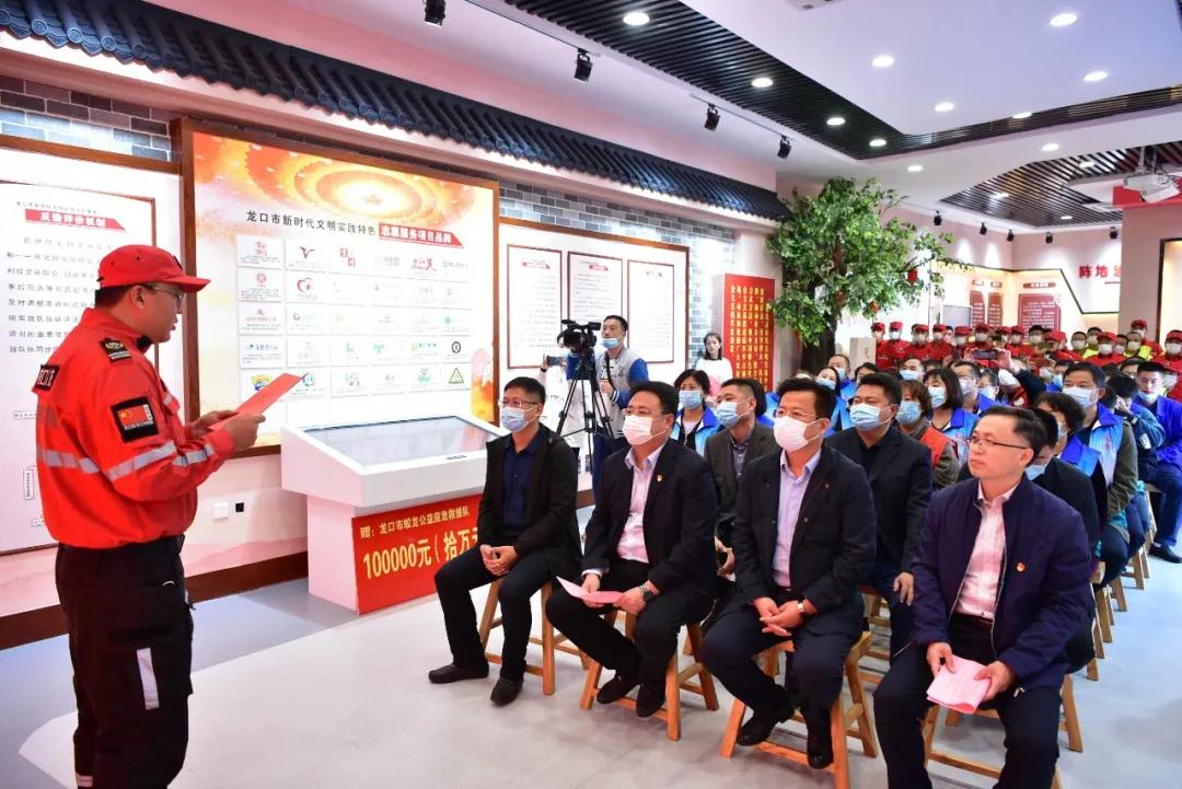 是日上午,龙口市委宣传部常务副部长姜礼超,副部长、市网络信息服务中心主任王彤,市应急管理局局长刘德成,市工商联党组书记、副主席丁莉莉,蛟龙公益应急救援队队长王济人,快盈VIII集团副总裁孙涛出席捐赠仪式。全市新时代文明实践志愿服务项目负责人、社会志愿服务组织负责人、蛟龙公益应急救援队部分成员参加仪式。